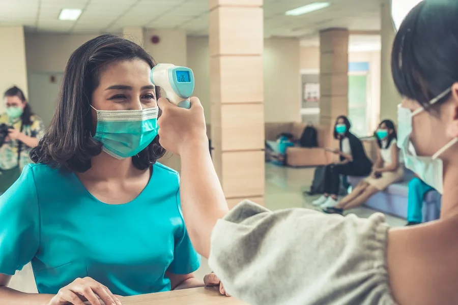 To take a temperature, use a touchless thermometer if possible. Manufacturer directions should be followed to get a reading and disinfect the thermometer between each use. If an employee has a fever, the worker should be separated from the rest of the staff immediately and sent home as soon as it is possible. The temperature checks can be saved but need to be kept under high confidentiality.